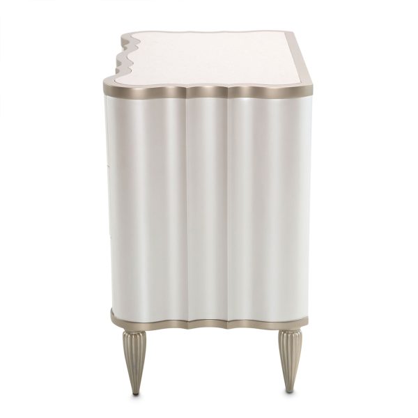 • Las molduras, las patas y los tiradores de los cajones tienen un acabado de platino.