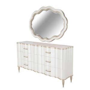 presenta un patrón de chapa de madera a juego y un detalle de adorno de platino pintado